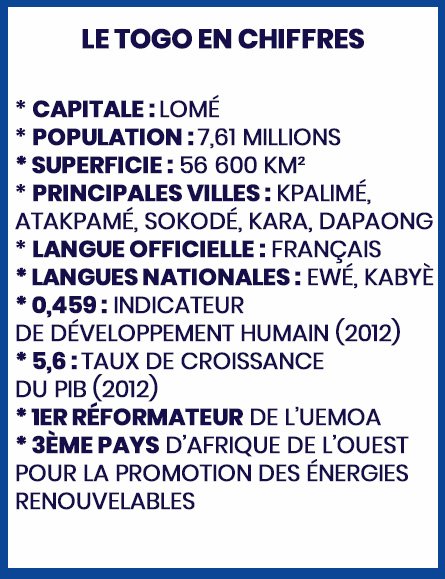 Longtemps qualifié de « petite suisse africaine » pour sa beauté, la fertilité de ses terres, un certain dynamisme économique et la bienveillance de sa population, le Togo est une véritable porte d’entrée pour l’Afrique de l’Ouest.